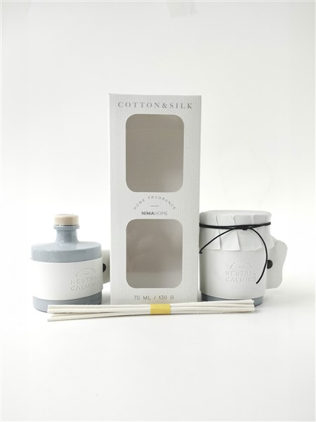 Nima Home – Σετ Αρωματικό Χώρου με Στικ 70ml & Αρωματικό Κερί 130gr – Cotton & Silk