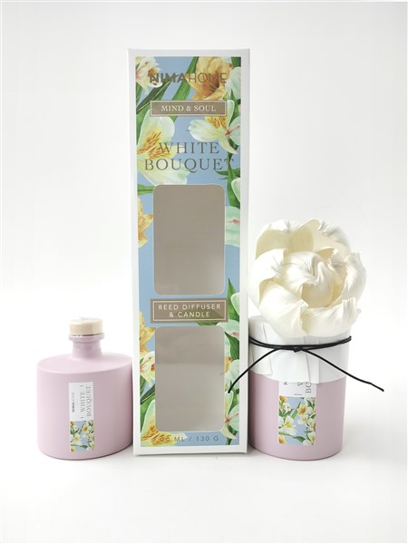 Nima Home – Σετ Αρωματικό Χώρου με Στικ 70ml & Αρωματικό Κερί 130gr – White Bouquet